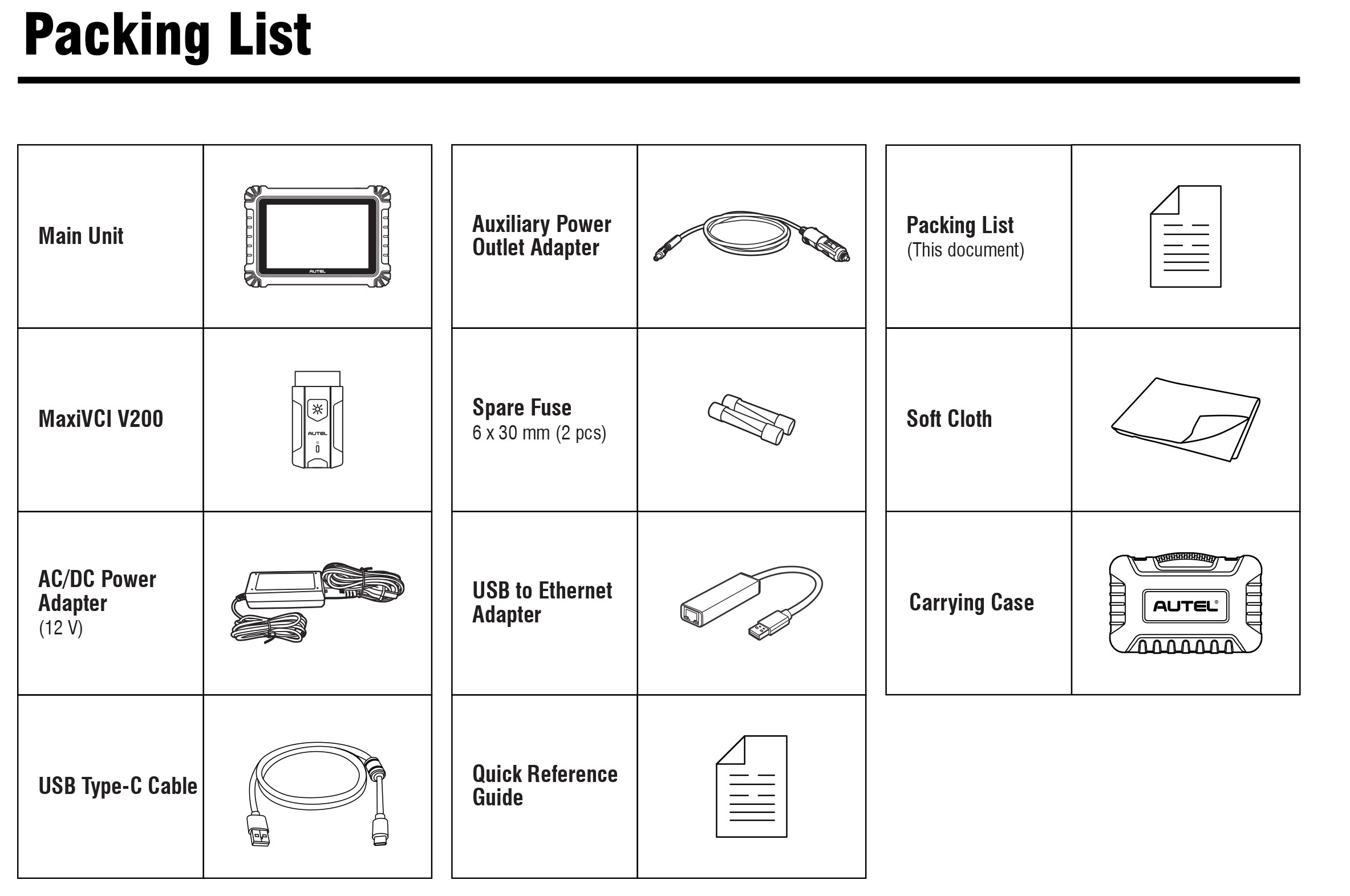 Autel Maxisys MS906 Max Professional Diagnostic Tablet Packing List: