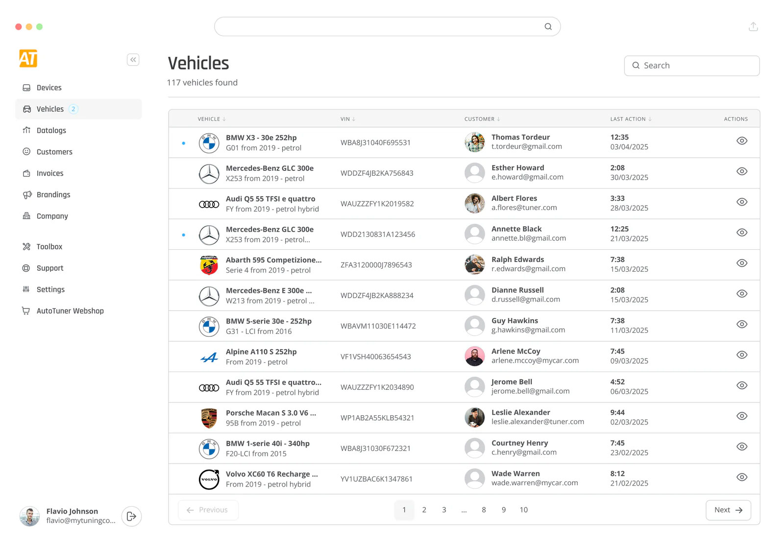 Quickly access all the vehicle files associated with the AT One tools you manage.