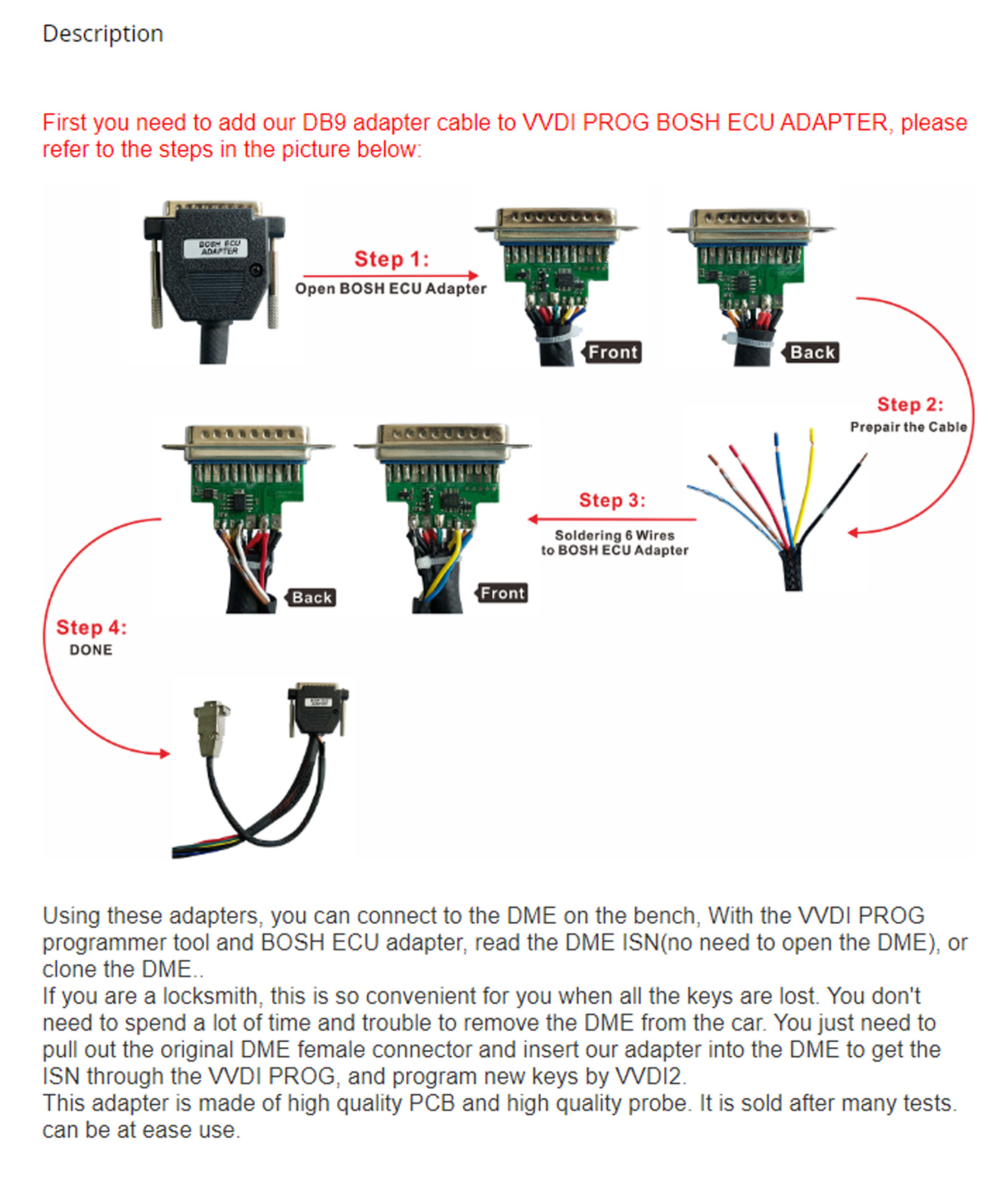 This is adapter is used for reading data form the BMW DME using the VVDI PROG