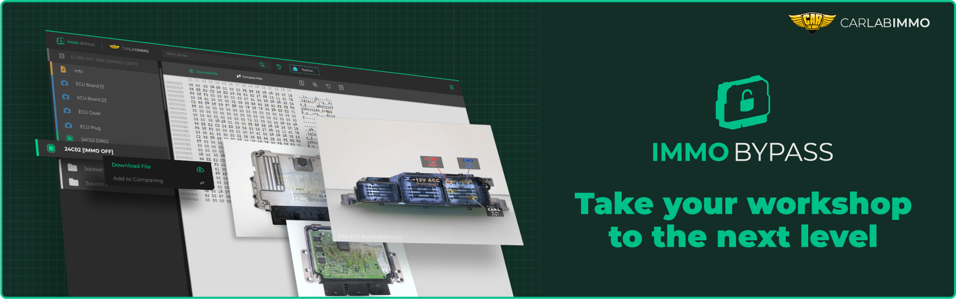 Car Lab IMMO, IMMO ByPass Software & App 1 Year Subscription is an online database of ECU files and repair solutions dedicated to Engine Control Units (ECU)