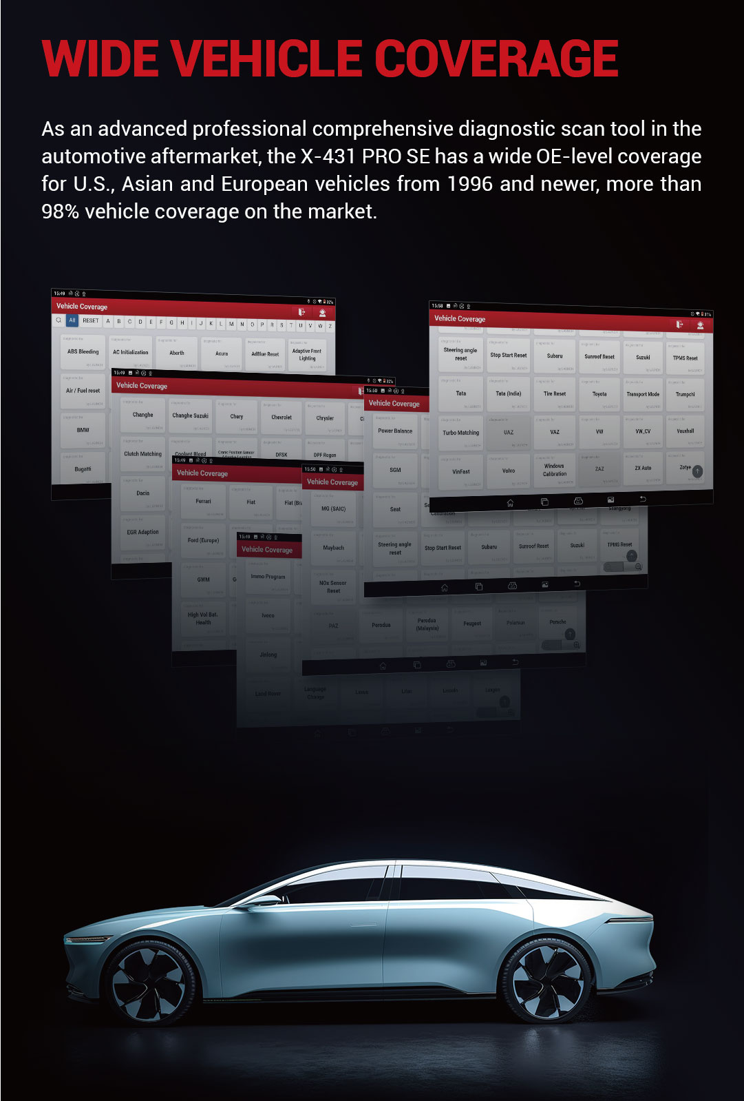 4.  Full system OE-Level diagnostics on 1996 and newer U.S., European and Asian vehicles