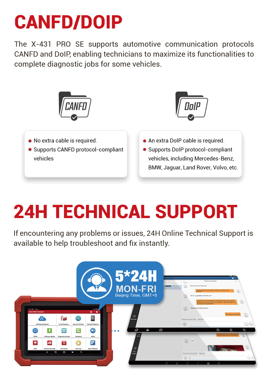 2.  Brand new designed VCI supports even more communication protocols, e.g. CAN, CAN FD, DoIP*, etc. (*Need an extra DoIP cable)