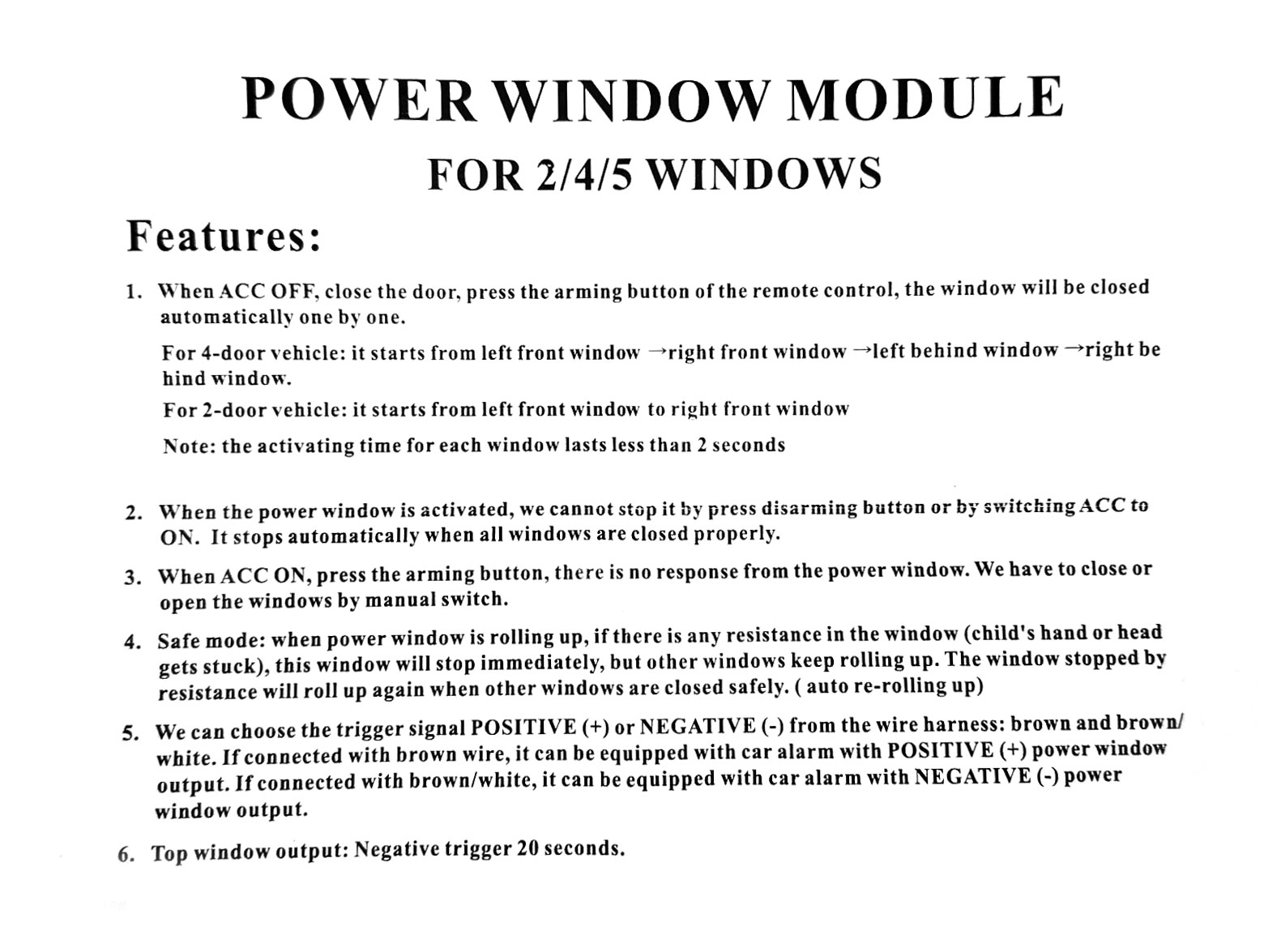 If connect with brown wire, Often equipped with + power window trigger car alarm.