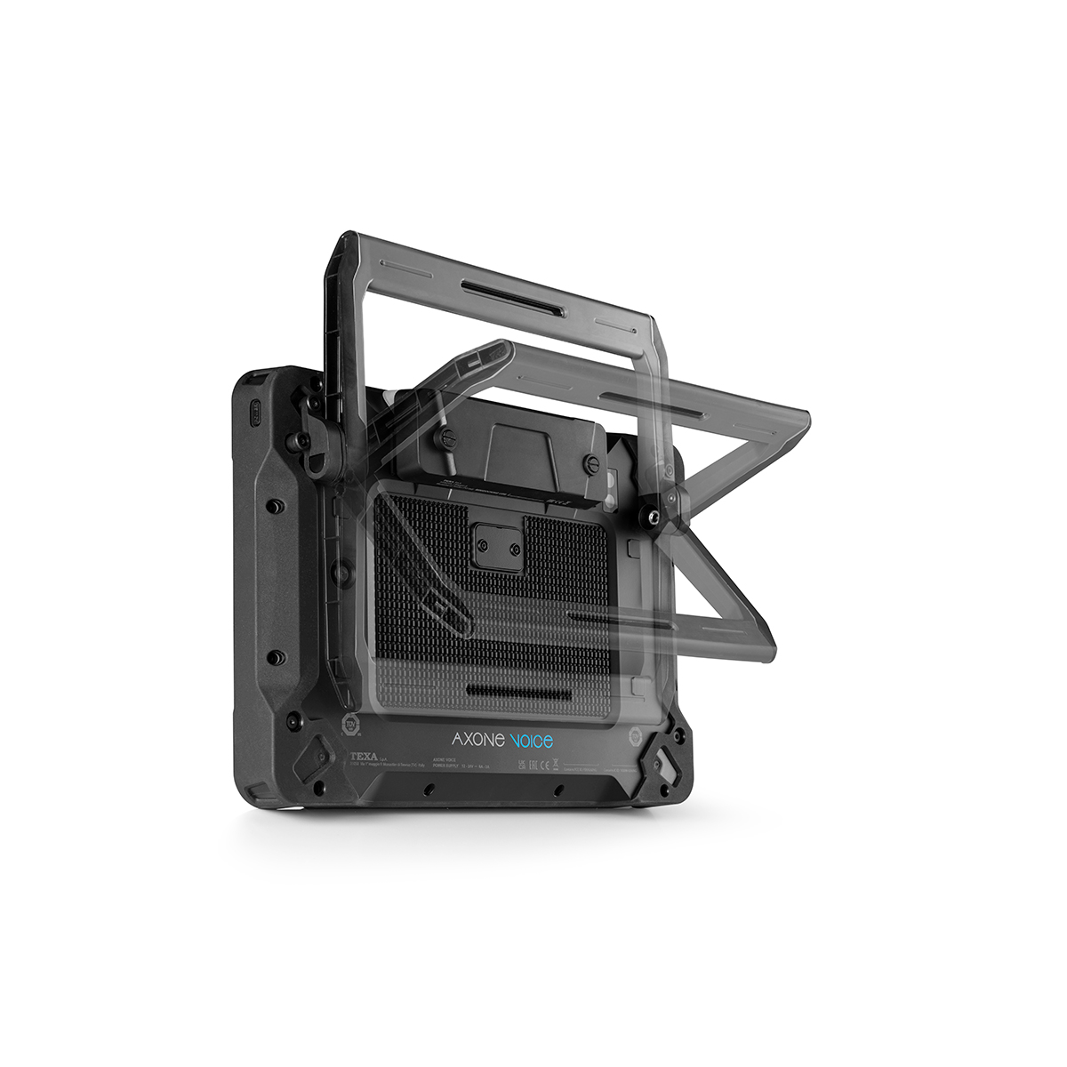 A practical ergonomic and adjustable optional handle useful to transport AXONE VOICE, to fasten it to the vehicle’s steering wheel or to lay it onto irregular surfaces maintaining an optimal visibility of the monitor by repair technicians.