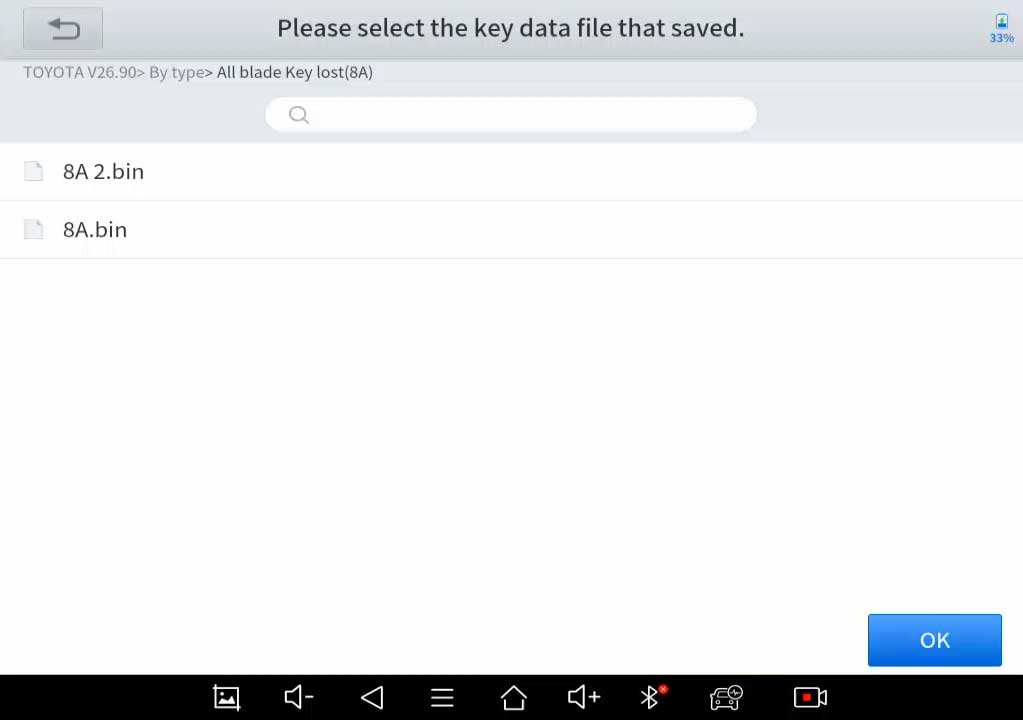 1. Open up Toyota software (V26.90 or higher) and go through these menus: By Type – All blade Key lost(8A). After that, this menu will show up.