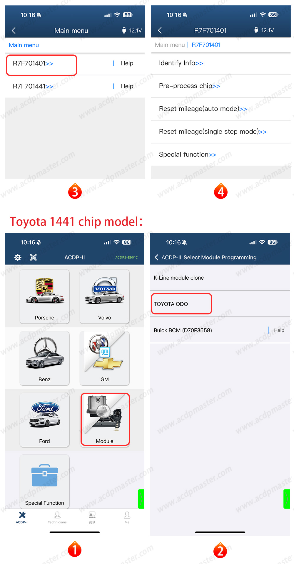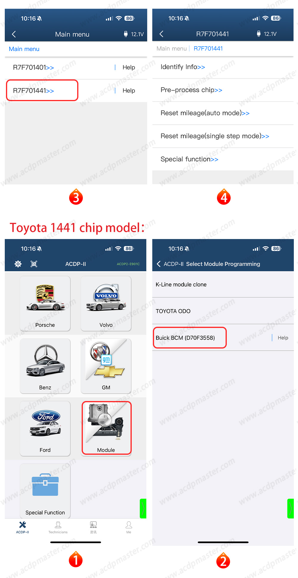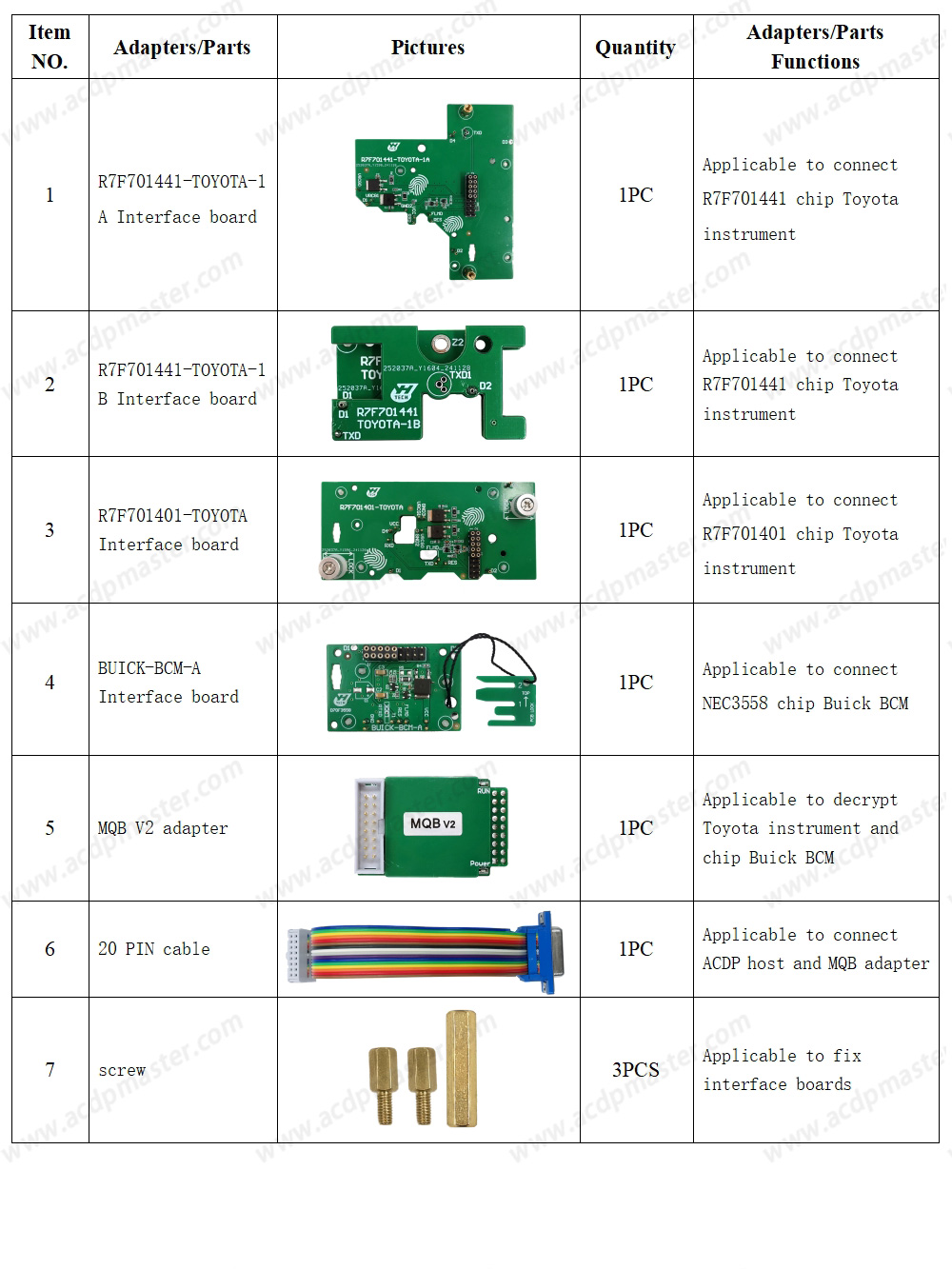 Support toyota semi-LCD meter mileage correction with chip model R7F701441. Support toyota full LCD meter mileage correction with chip model R7F701401. Support Buick BCM mileage correction with chip model NEC3558.