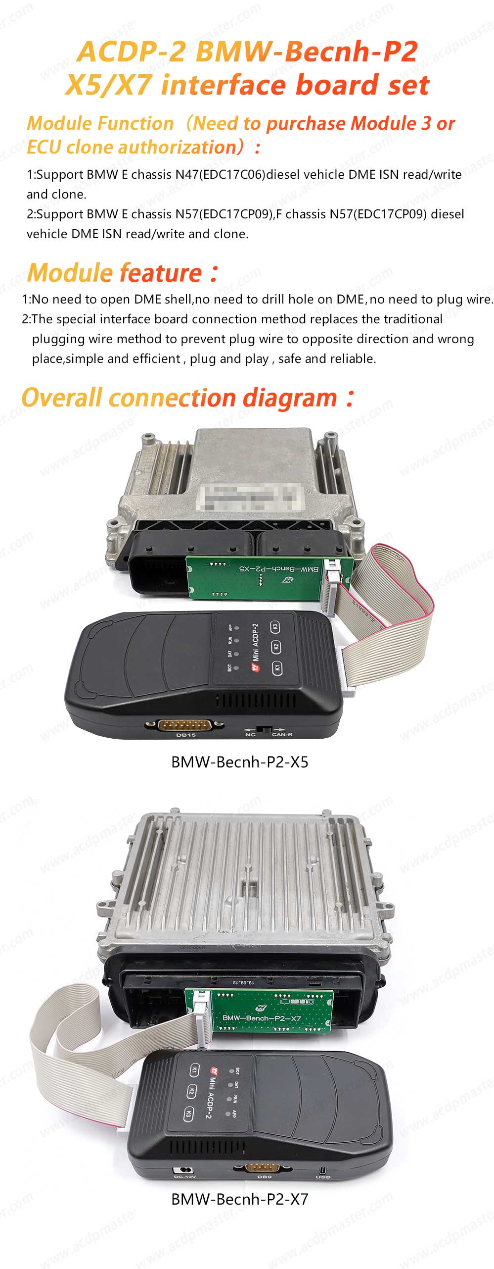New Yanhua ACDP2 BMW DME Adapter X5 / X7 Interface Board ( ACDP-2 BMW-Becnh-P2 X5/X7 interface board set )  Support BMW E chassis N47/N57,F chassis N57 diesel DME ISN read/write and clone.