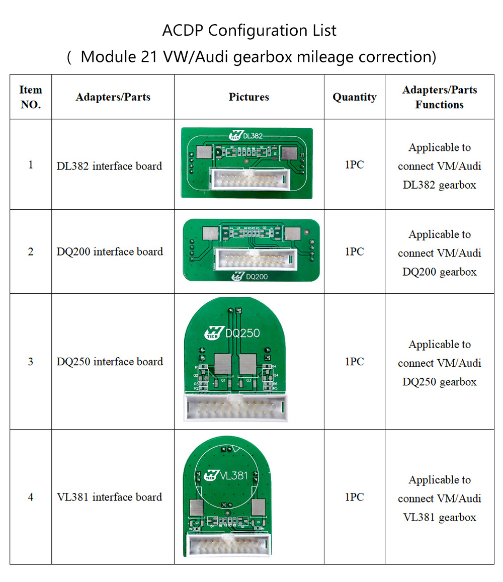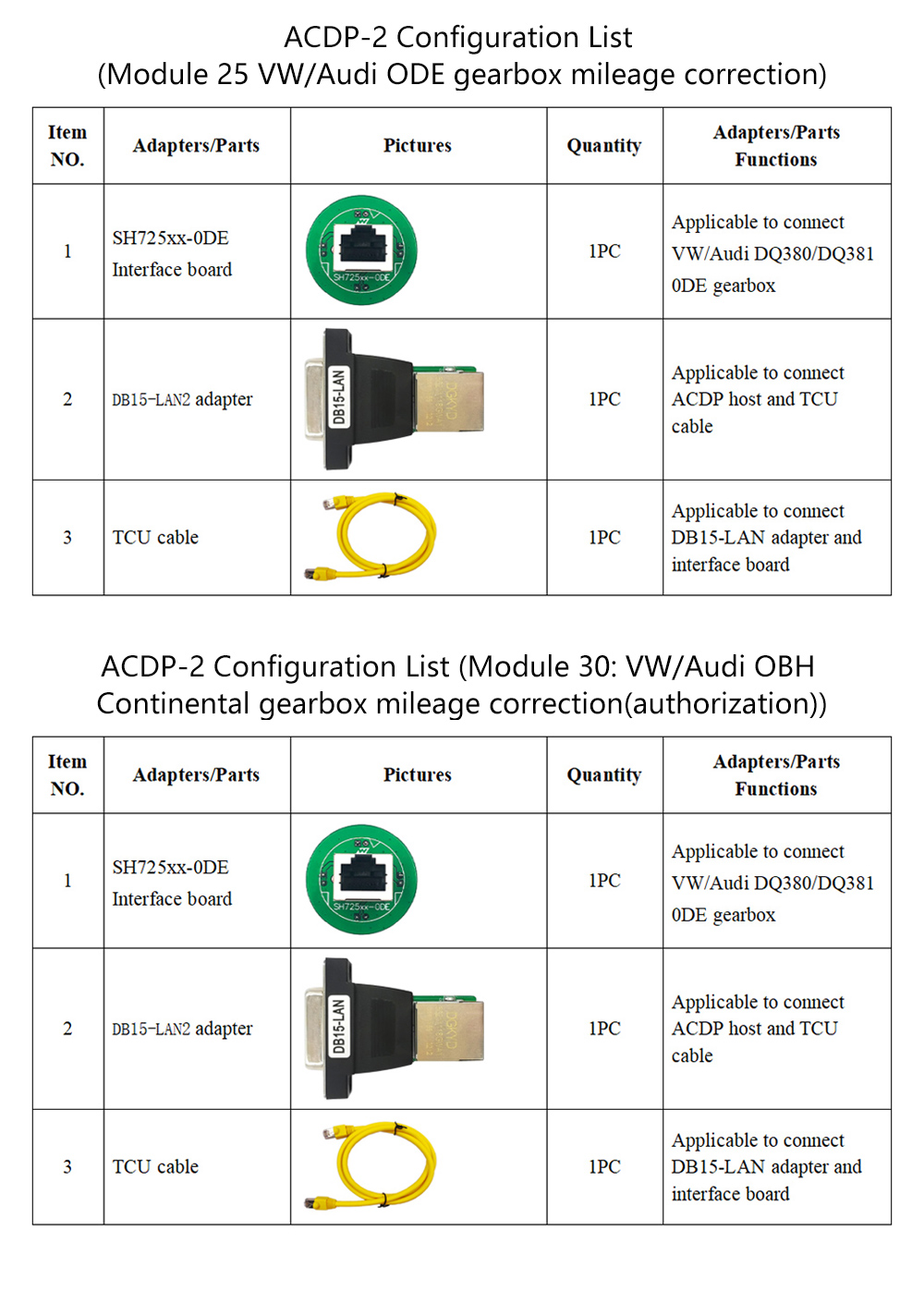 Yanhua Mini ACDP 2 - VW / Audi TCU Mileage Package ( Mini ACDP 2 Master Basic Module & Module 21 + 25 + 30 VW / Audi )