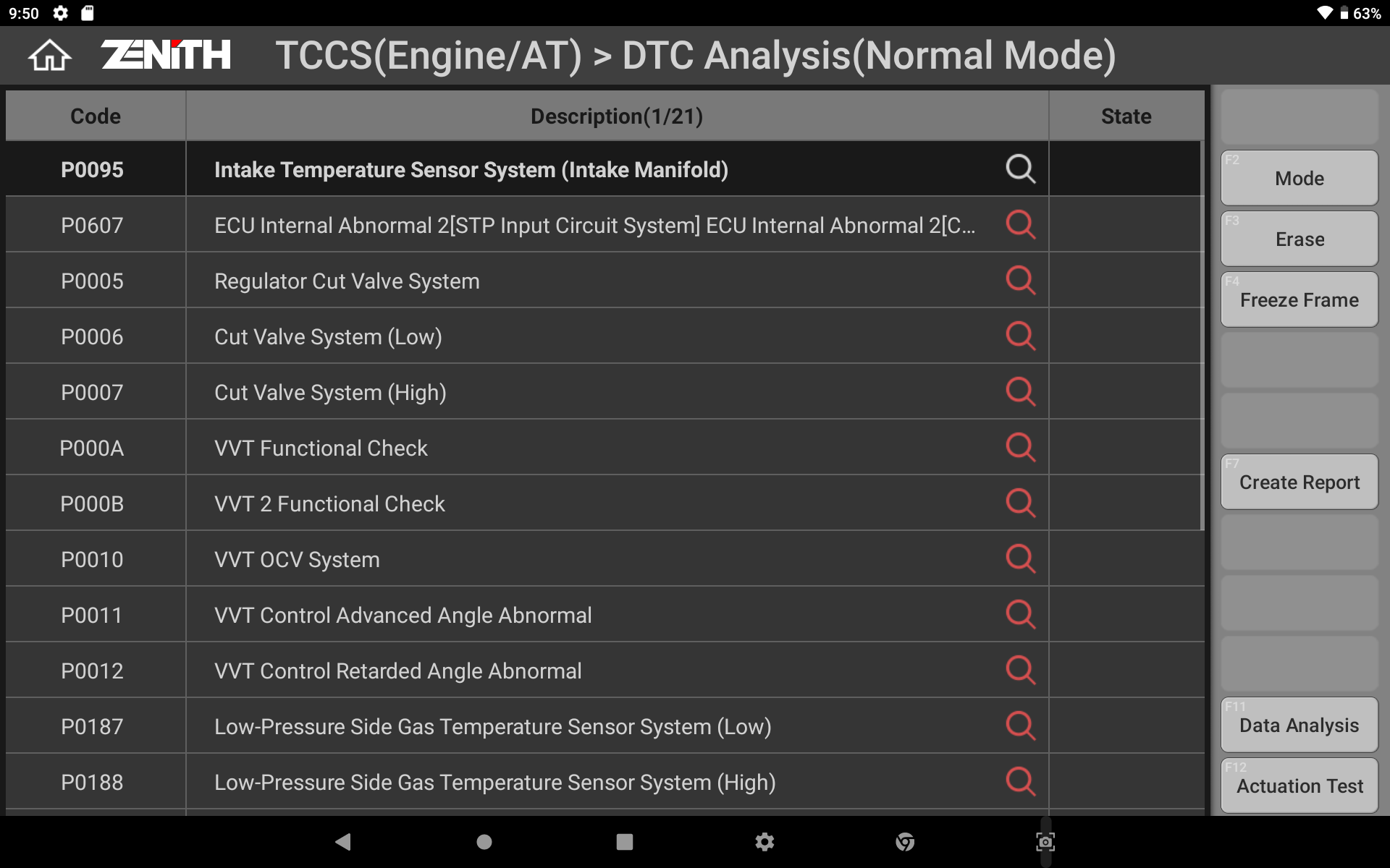 Zenith Z7 Device Diagnostic Scan Tool Coverage List