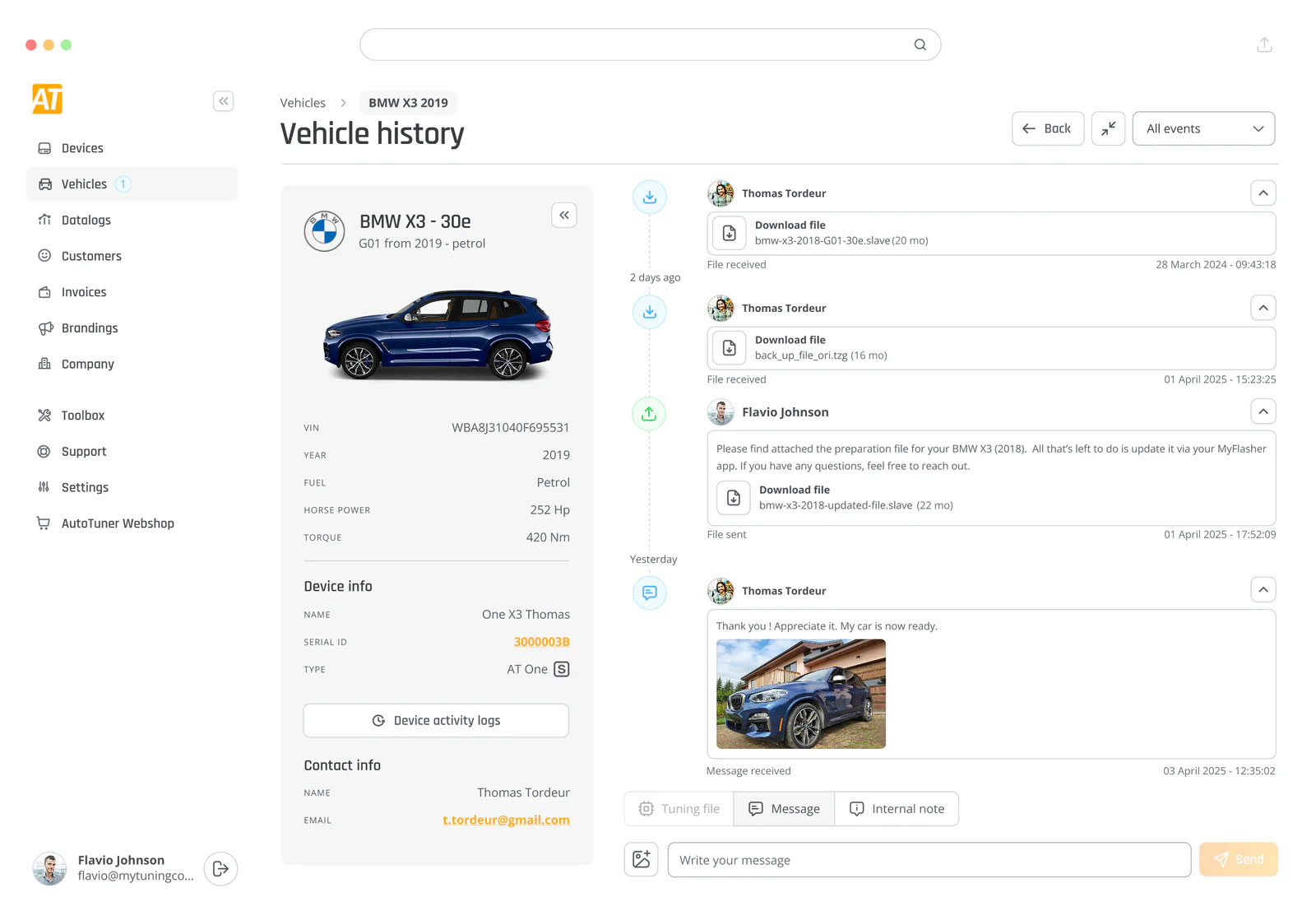 From that point, the customer can communicate with you using the built-in chat, read its vehicle's data, send you the file, and write the tuned files they receive from you back to the vehicle.
