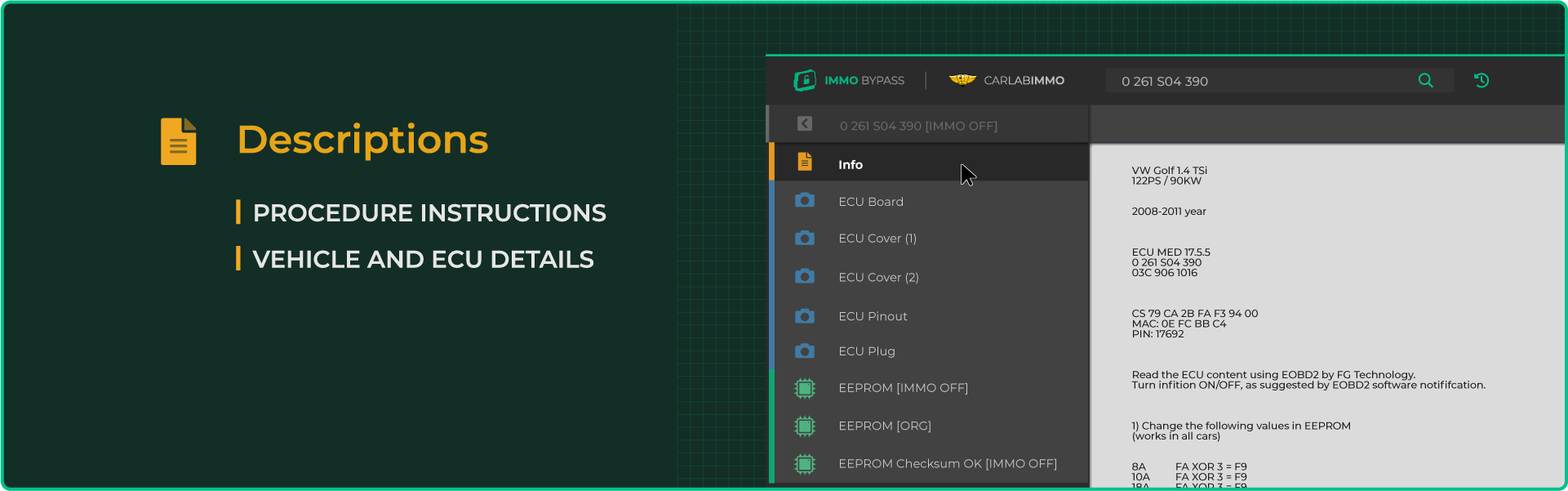Car Lab IMMO, IMMO ByPass Software & App 1 Year Subscription is an online database of ECU files and repair solutions dedicated to Engine Control Units (ECU)