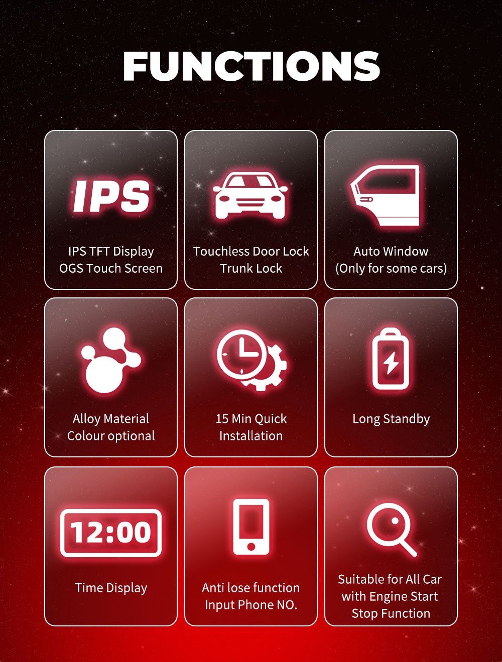 • LCD Universal Smart Key Kit With Keyless Entry And IOS Car Location Tracking System Type has location function.