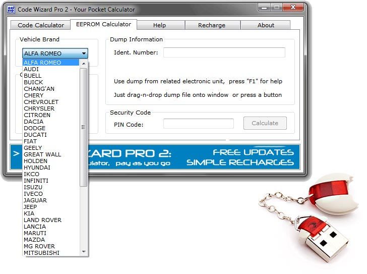Calculation of security codes for immobilizer key programming and electronic unit synchronization, calculation of mechanical KEY codes by VIN, passwords for Coded Access to security functions of genuine OEM software and much more. Code Wizard Pro 2 is a powerful solution for real professionals. Despite the complex algorithms and sophisticated features CWP-2 is user friendly and easy to use.