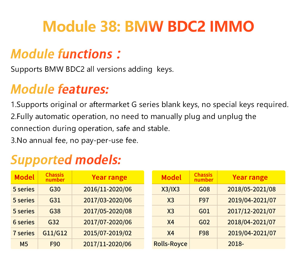 Yanhua ACDP BMW G Series Set Module 38 Features: