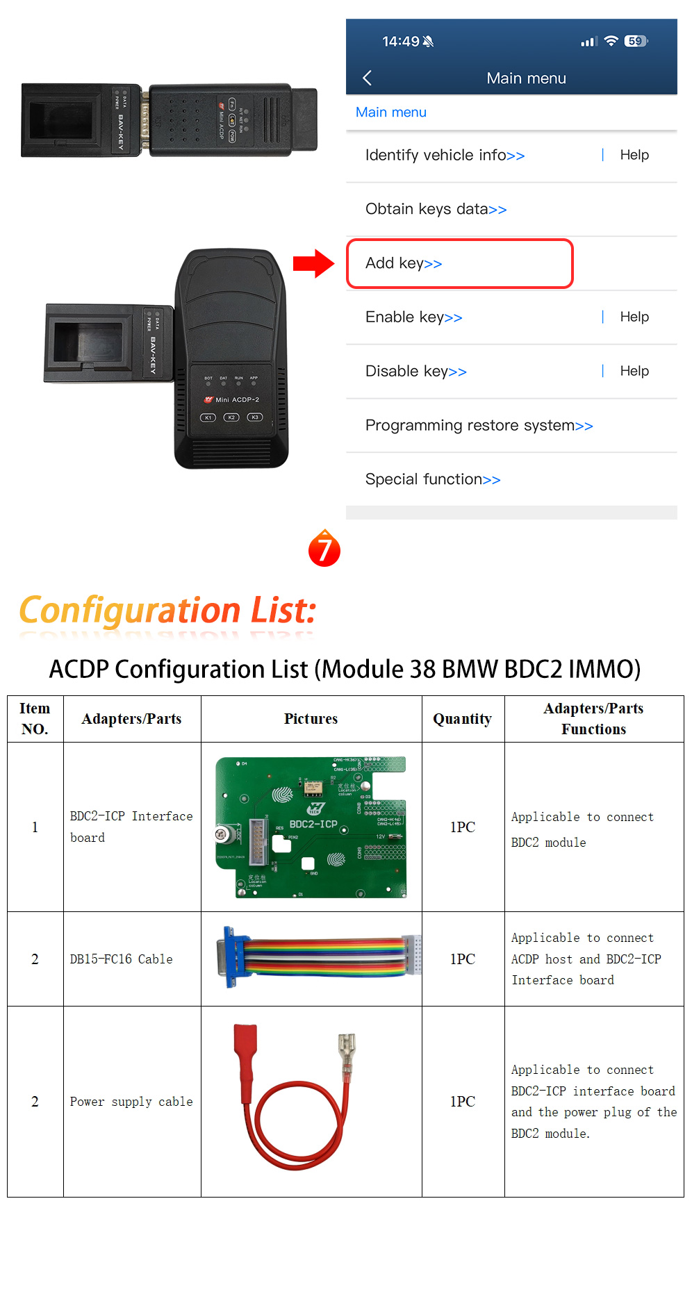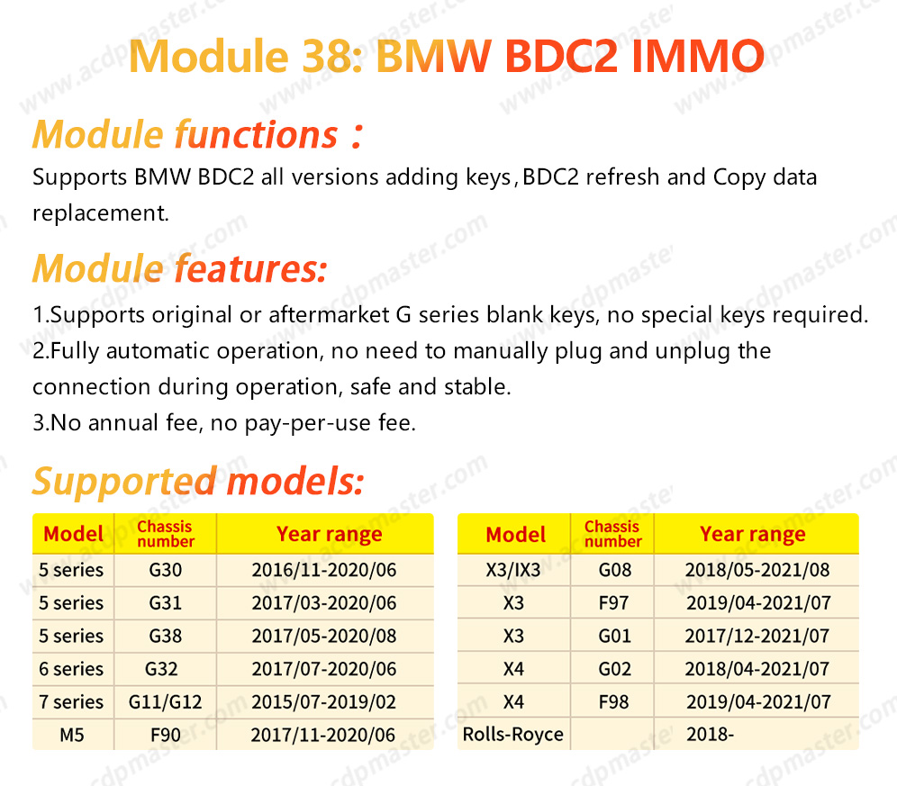 - Yanhua ACDP BMW BDC2 Keys Learning Bench Platform works with Module 38