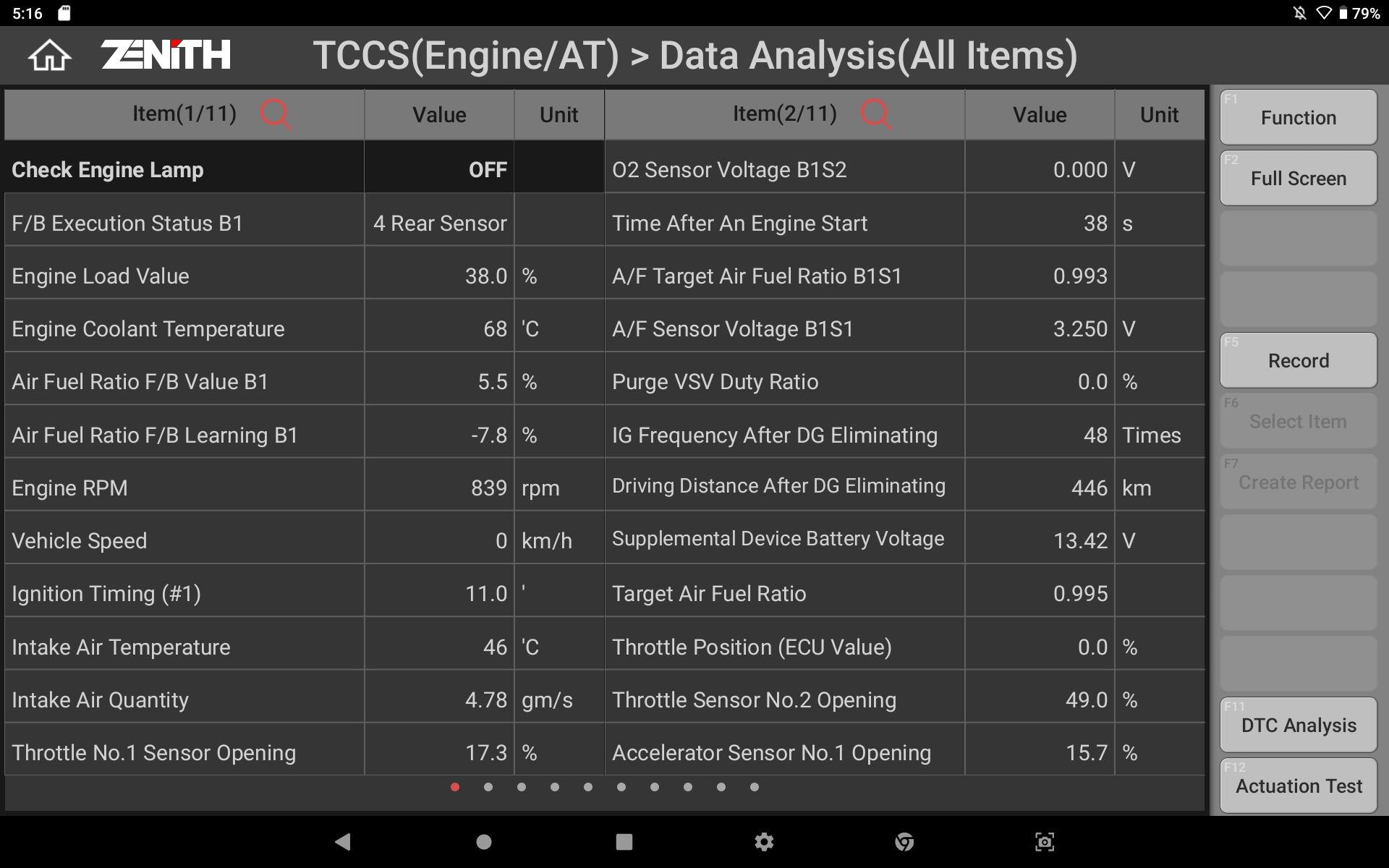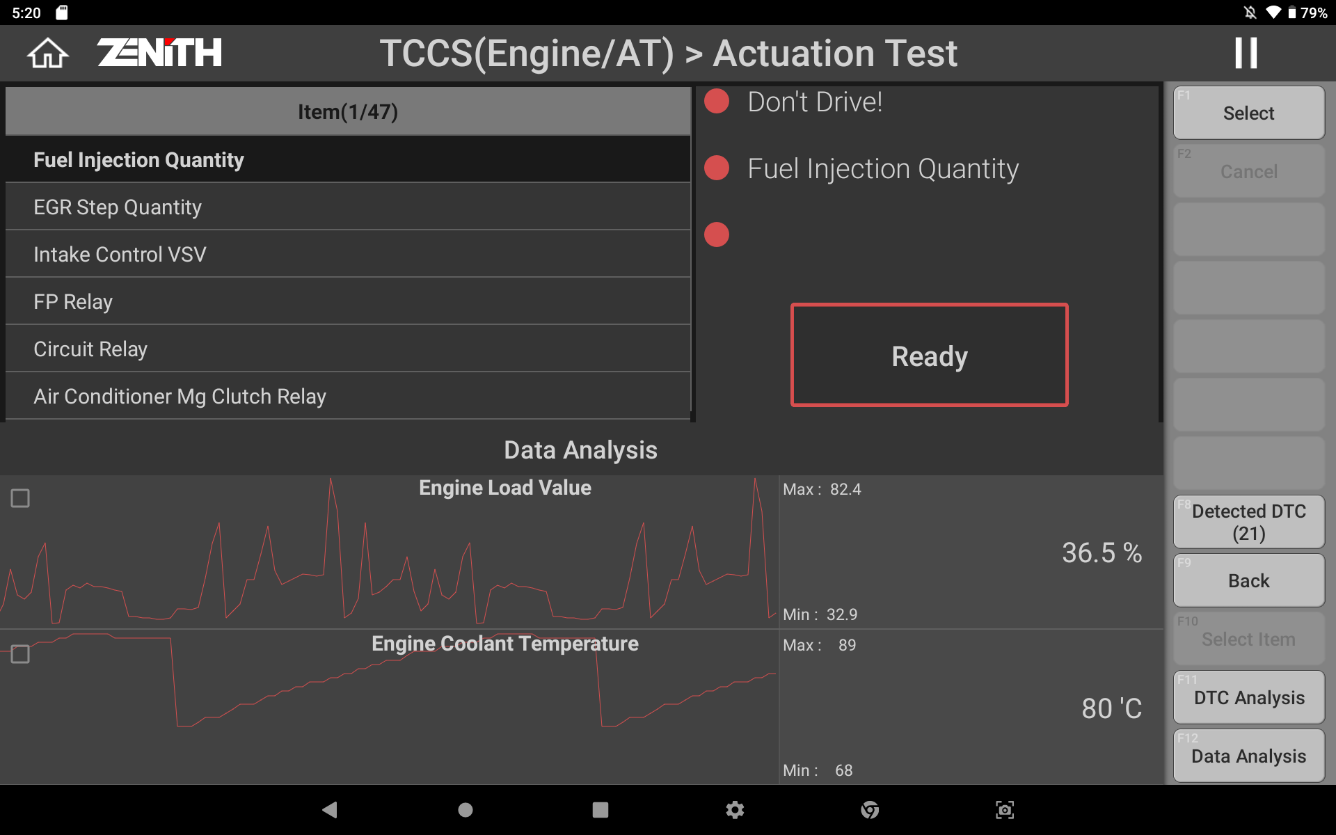 Zenith offers not just simple actuation test function. We go next step to combine live data and graphing in actuation test, so that user can check the performance of the testing component live!