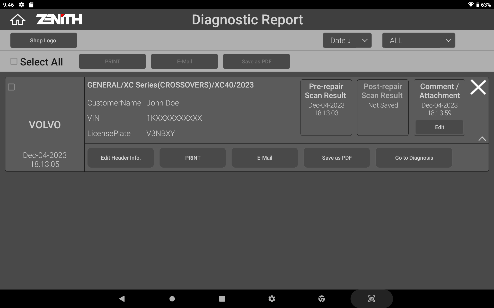 Zenith offers easy creation of diagnostic report with Pre-scan and Post-scan result. Not only user can save the reports as PDF file, also with the help of its robust network connectivity, user can print the report directly with a blue-tooth printer or send them to desired E-mail address.